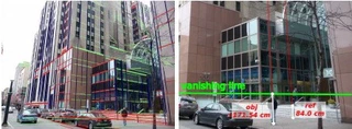 Surveillance cameras have become a customary security equipment in buildings and streets worldwide. It is up to the field of Computational Forensics to provide automated methods for extracting and analyzing relevant image data captured by such equipment. In this article, we describe an effective and semi-automated method for detecting vanishing points, with their subsequent application to the problem of computing heights in single images. With no necessary camera calibration, our method iteratively clusters segments in the bi-dimensional projective space, identifying all vanishing points – finite and infinite – in an image. We conduct experiments on images of man-made environments to evaluate the output of the proposed method and we also consider its application on a photogrammetry framework.